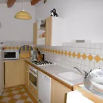 The kitchen amenities at the Noirmoutier-en-l'Ile accommodation feature a refrigerator, an oven, and kitchenware, provided in a dining area.